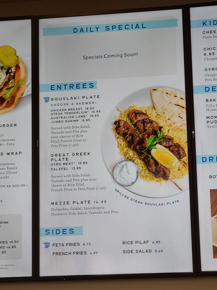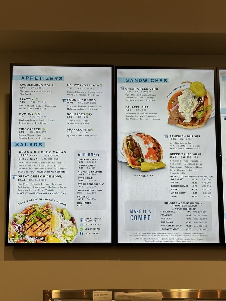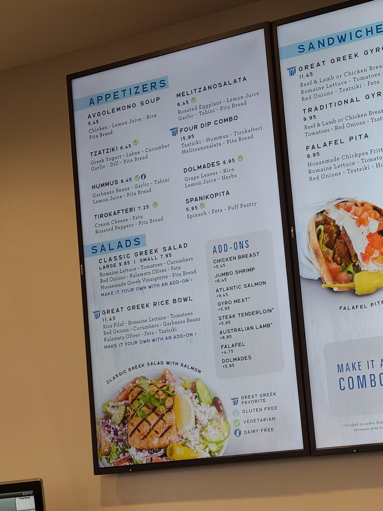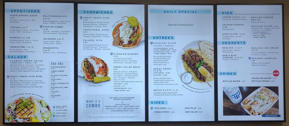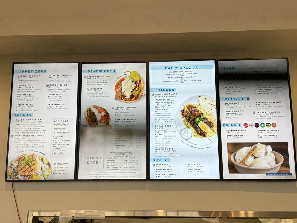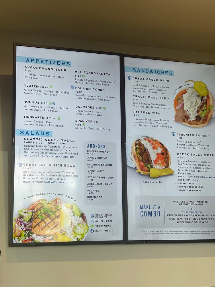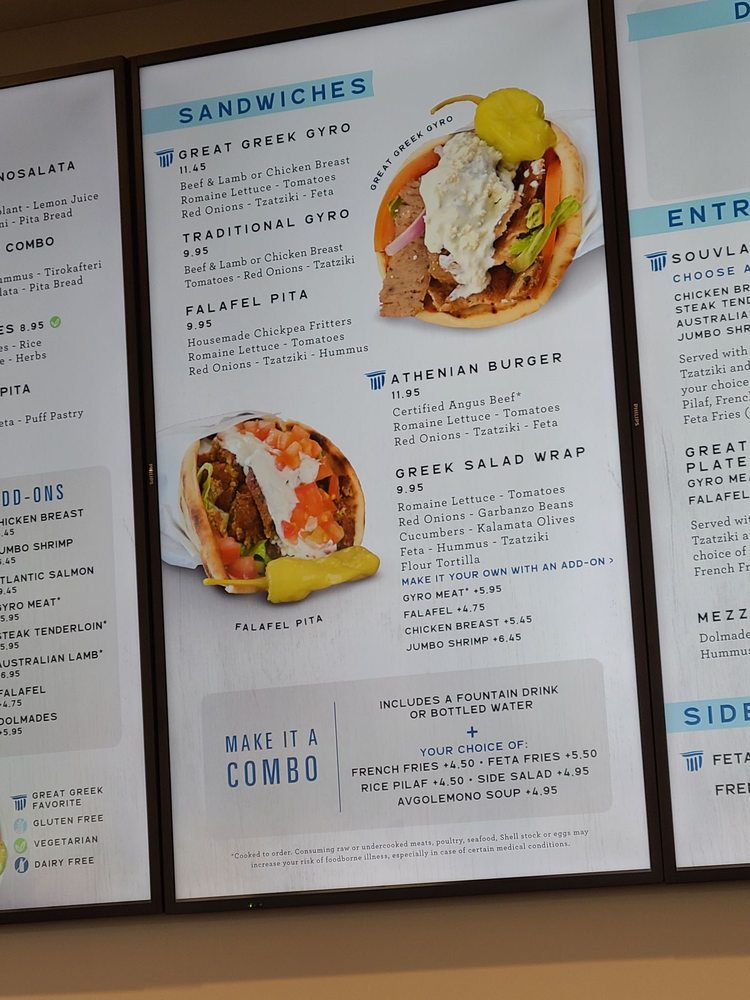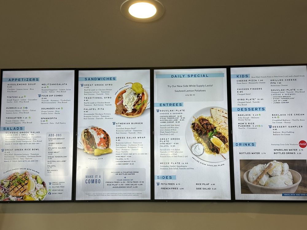 For a heartier meal, try their gyro plate or indulge in the lamb souvlaki paired with perfectly seasoned feta fries for a savory explosion of flavors. Don’t miss their famous baklava ice cream for dessert—it’s a dream! Guests appreciate the friendly service and spotless ambiance, making it an ideal spot for either a quick bite or a relaxing meal. With rave reviews highlighting the food's authenticity and freshness, The Great Greek is truly a must-visit culinary gem!